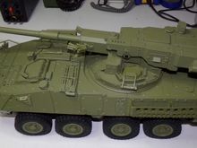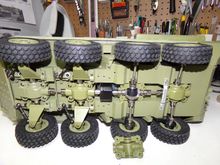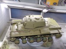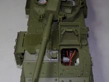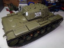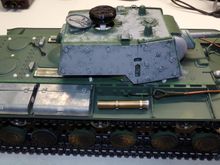 It's using the newer Taigen/Torro KV-1 lower. I custom fit a set of the Heng Long all enclosed CNC machined 1/56 ratio (slow) gearboxes to the Taigen hull. It also got a metal turret ring and metal turret drive motor. Installed a FRS7S Visaton speaker in an off the shelf plastic box and printed a speaker grill from ABS for it. It's being controlled by a Clark TK-50SP board and Flysky FS-I6S radio/FS-iA6B receiver.