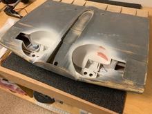 The cut lines for the gear bezel/flange. The gear will need to be installed for the horizontal cut line.