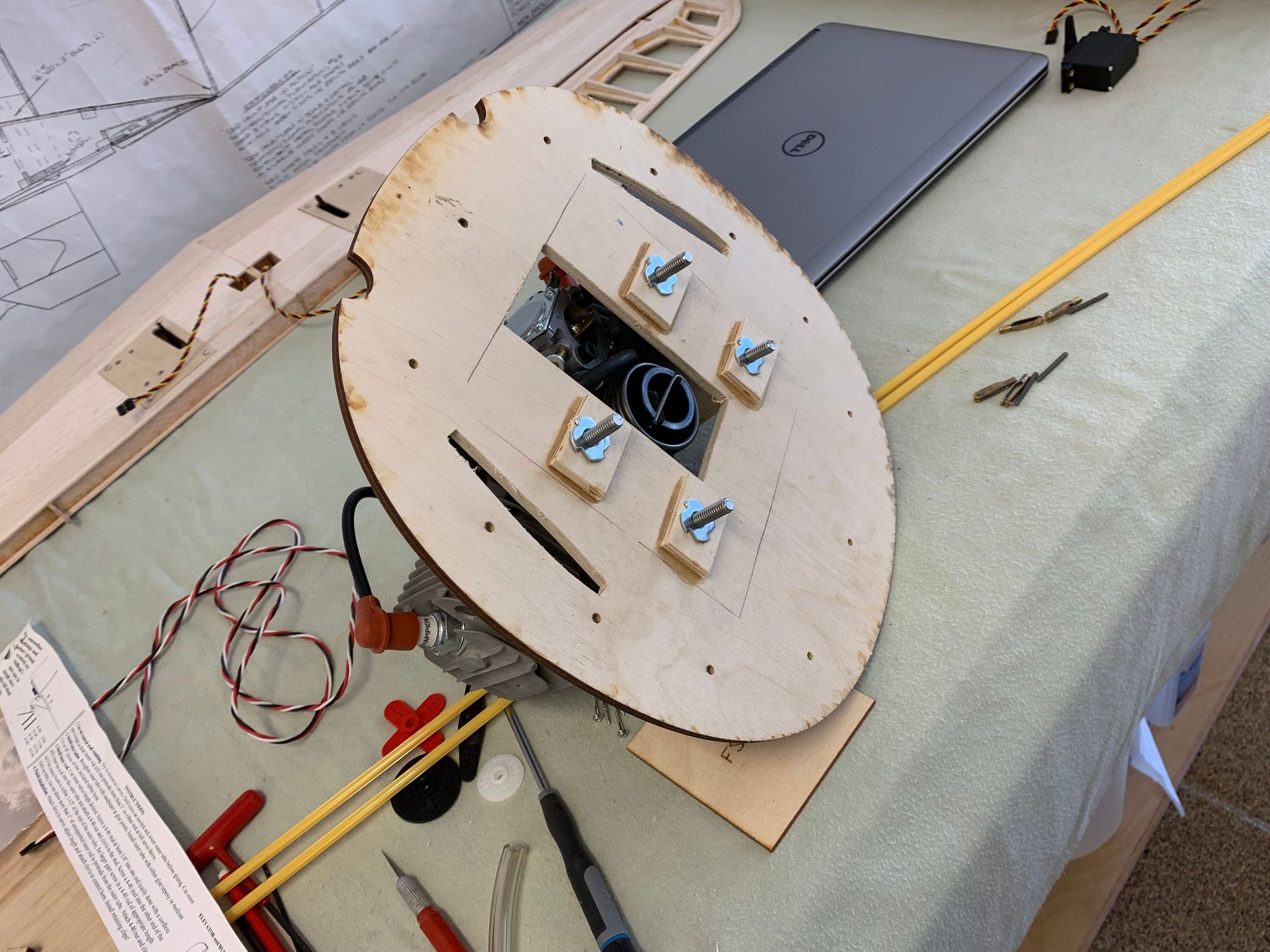 Copied Sam P's removable firewall idea. I'll add the servo and gas tank trays next, after I confirm the right spacing.