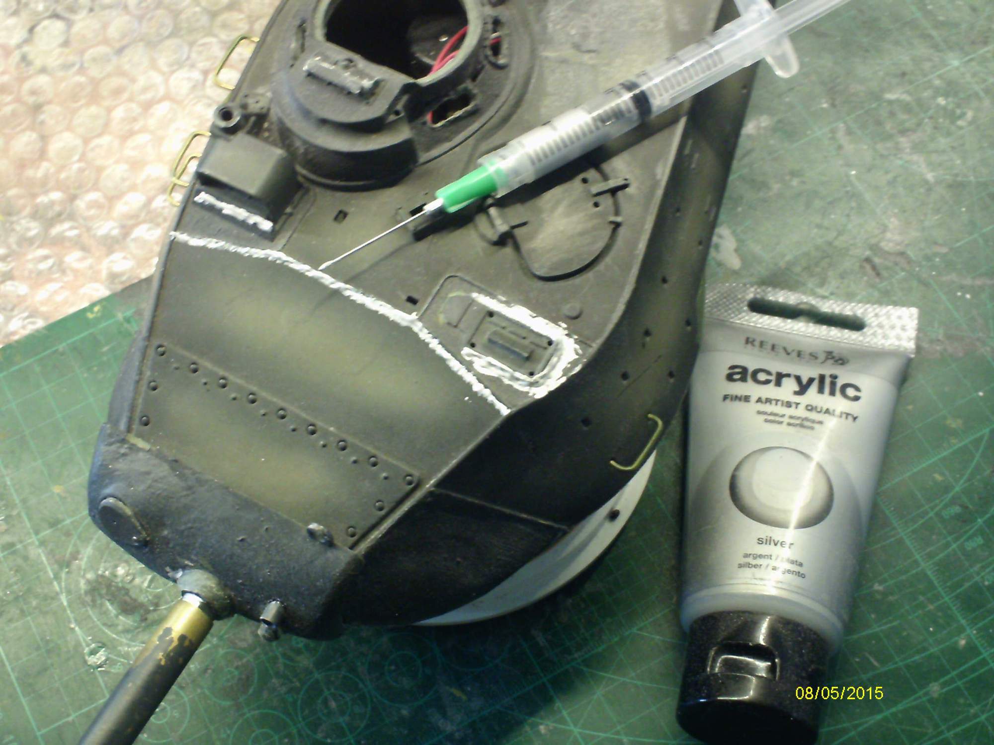 Standard HL cupola before sanding & trying Fabric paint as weld