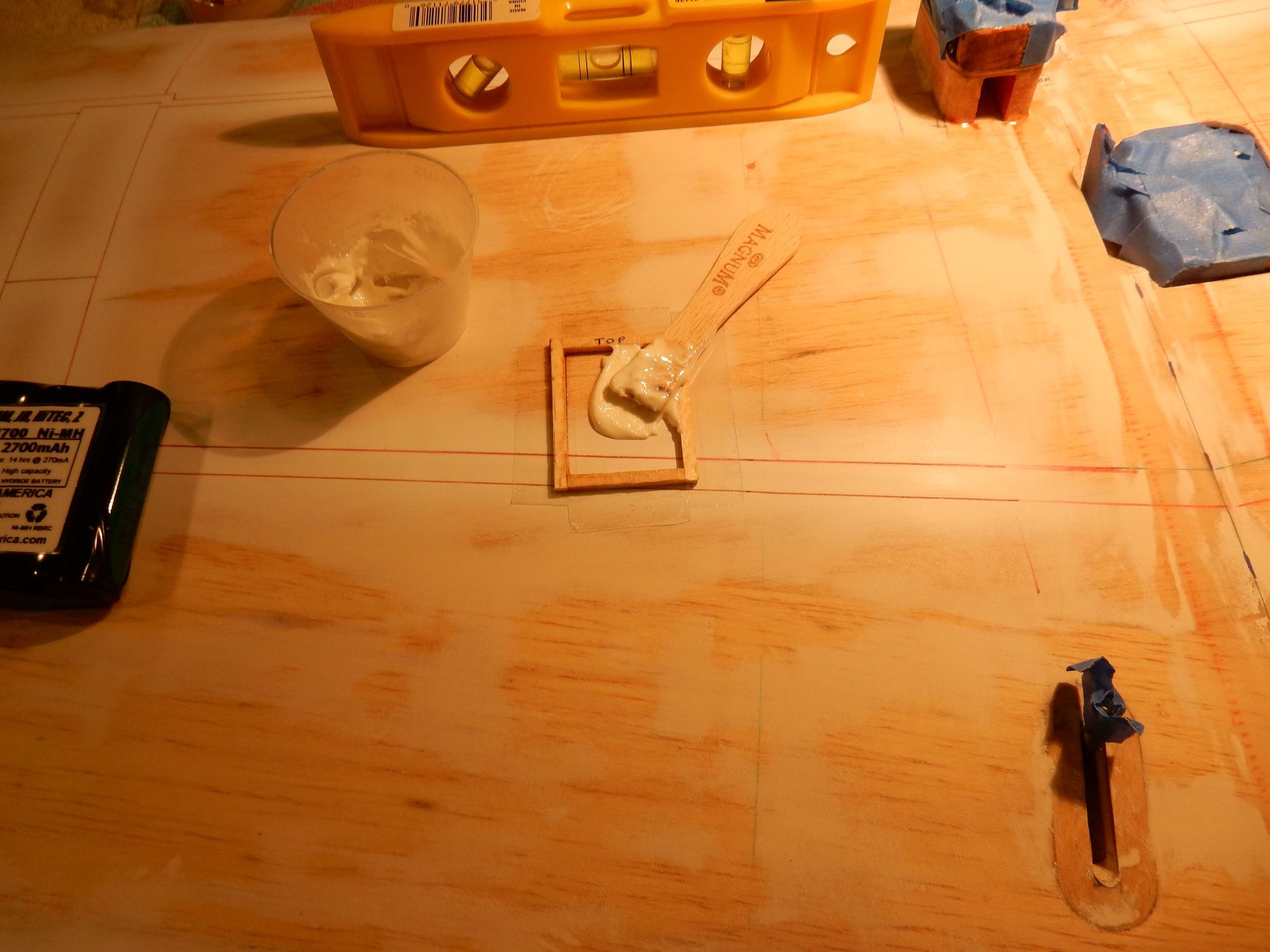 Box frame in place w/ 2-sided tape along perimeter. Resin & Micro-Ballon slurry troweled inside.