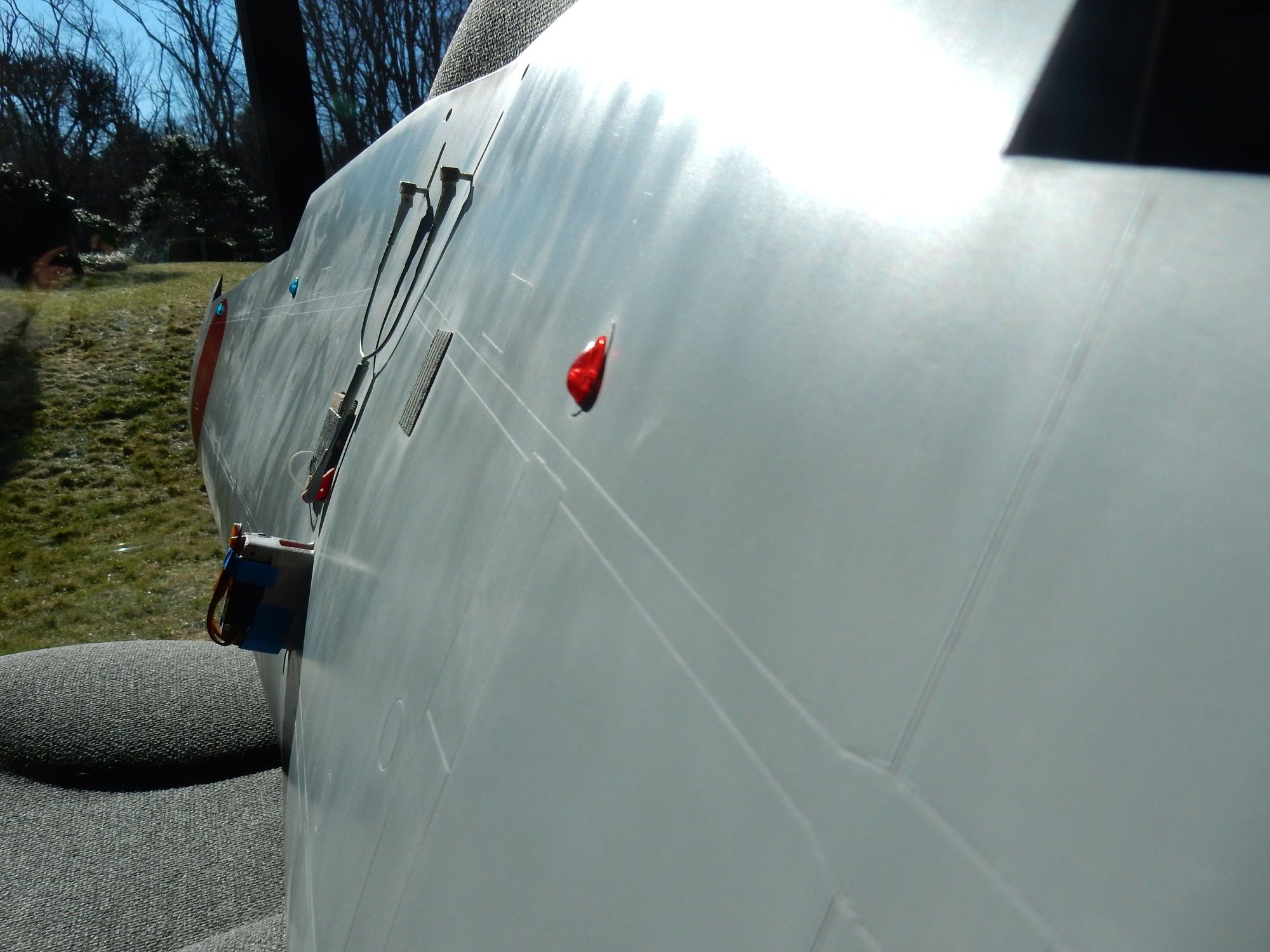 Sunlight shining through formation light teardrop, which also shows clear bulb within.