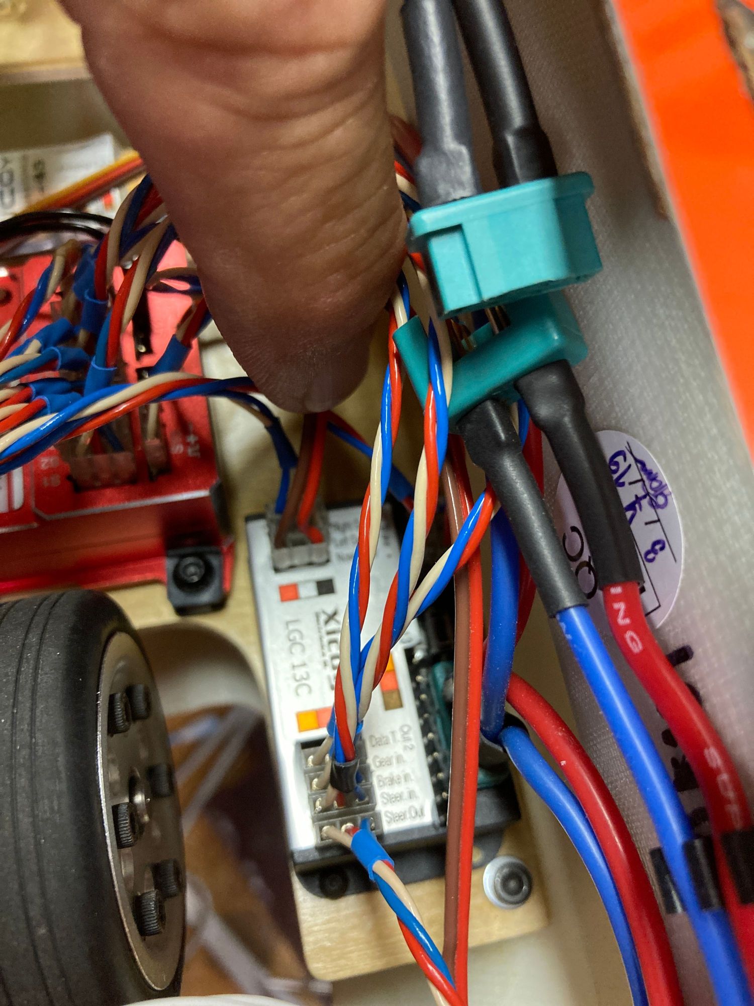 The red wire and black wire are on the outside The connector you will notice my connectors turned around to get the correct direction of travel on the retracts