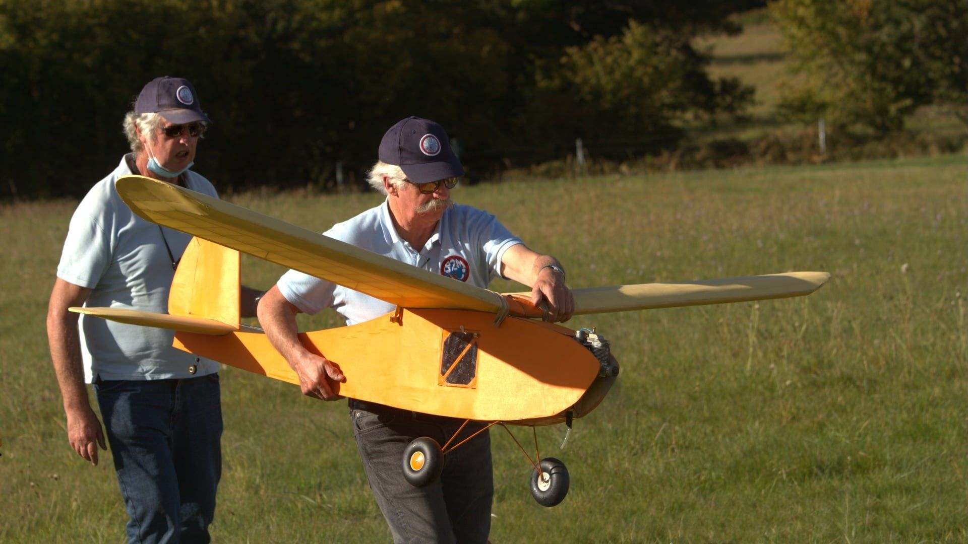 Your humble servant carries the Big Guff to the take off point at a local fly-in. My club-mate Gerard carries my transmitter.
